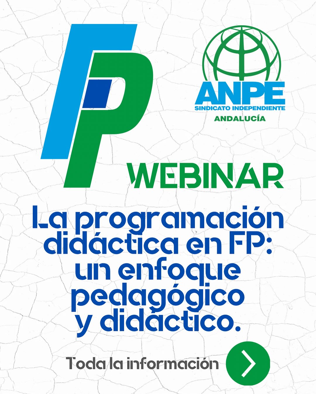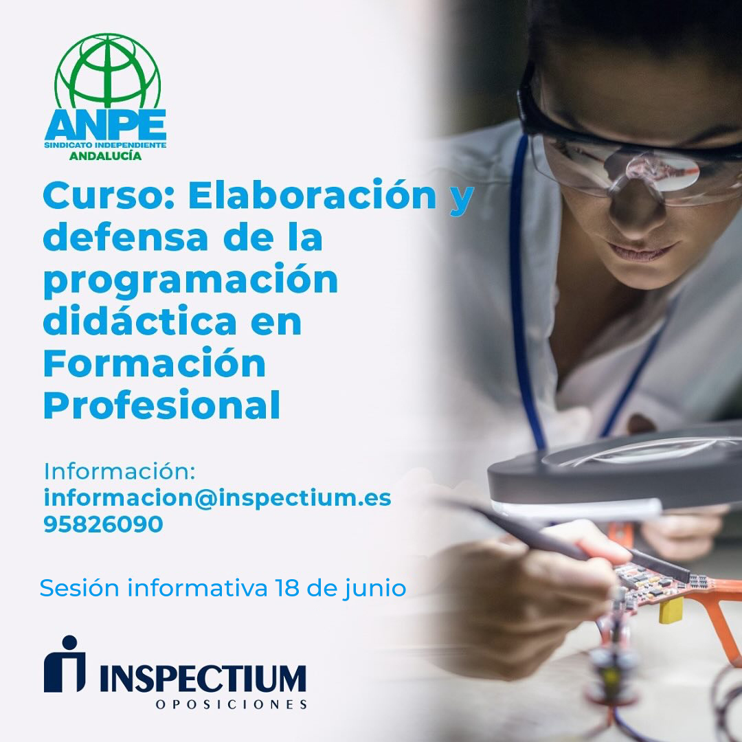 Estimados compañeros/as, Os presentamos la WEBINAR: “LA PROGRAMACIÓN DIDÁCTICA EN FORMACIÓN PROFESIONAL: UN ENFOQUE PEDAGÓGICO Y DÍDÁCTICO”, que se realizará el próximo día 29 de abril, en colaboración con ANPE, con la que pretendemos ayudaros en vuestra programación. Descripción: Esta webinar está destinada a todas las especialidades de Formación Profesional (Enseñanza Secundaria y Cuerpos Singulares de […]
