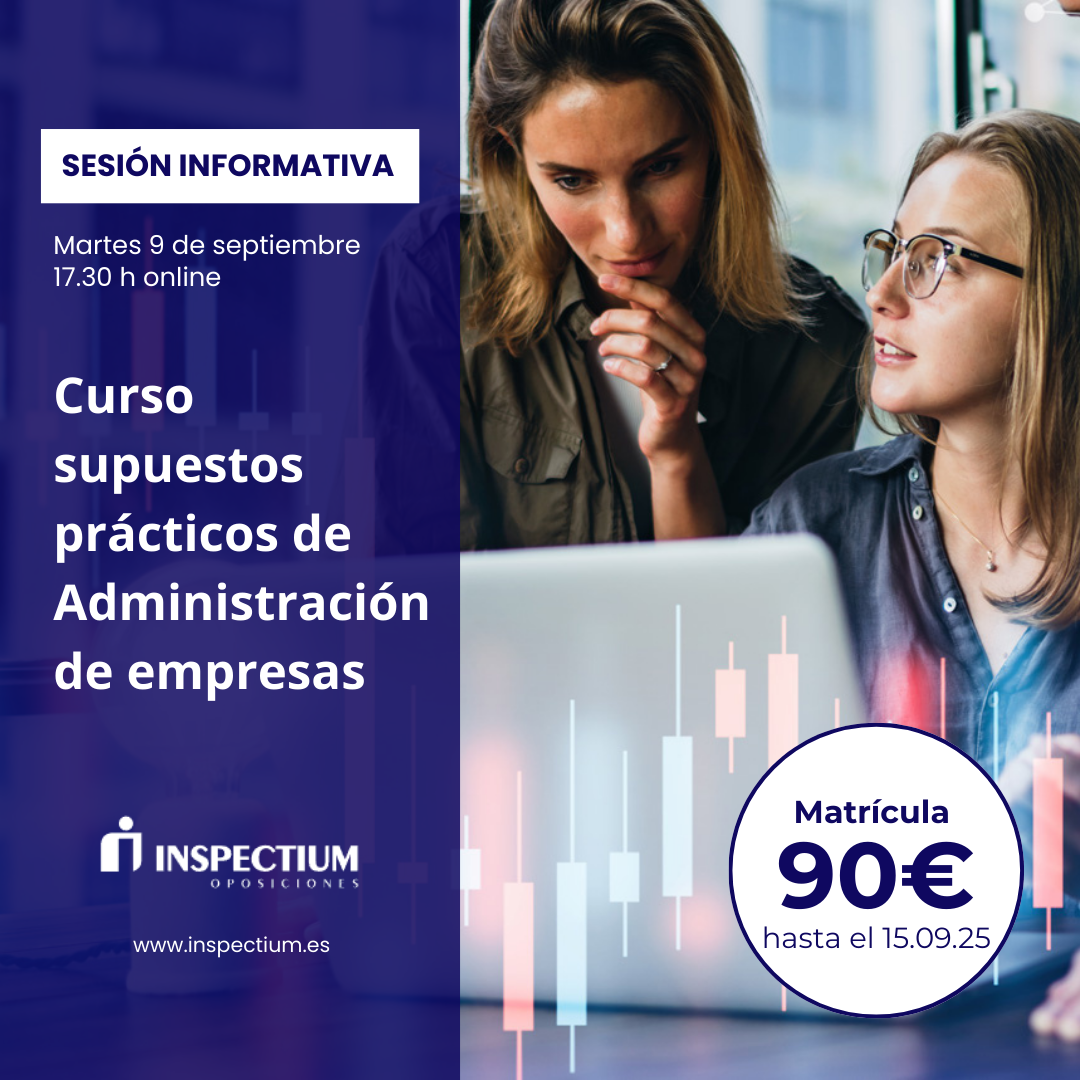 Estimado compañero/a, Dada la alta demanda y con el ánimo de daros toda la información en relación con el “CURSO: SUPUESTOS PRÁCTICOS DE ADMINISTRACIÓN DE EMPRESAS”, desde INSPECTIUM OPOSICIONES, vamos a realizar la I SESIÓN INFORMATIVA, PARA ACLARARA TODAS VUESTRAS DUDAS, DONDE CERRAREMOS GRUPO (PLAZAS LIMITADAS A 20). Dicha SESIÓN INFORMATIVA, se celebrará EL PRÓXIMO […]